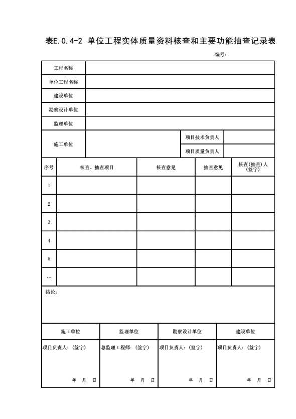 表格名称:表E.0.4-2 单位工程实体质量资料核查和主要功能抽查记录表