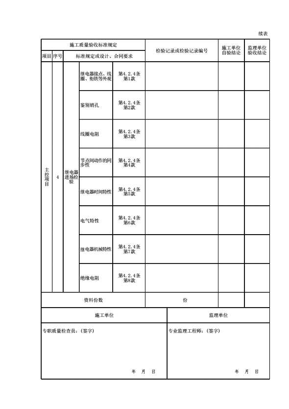 表格名称:08040101 设备及材料进场检验检验批质量验收记录表