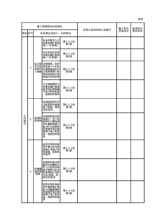表格名称:08070104 防雷及接地检验批质量验收记录表