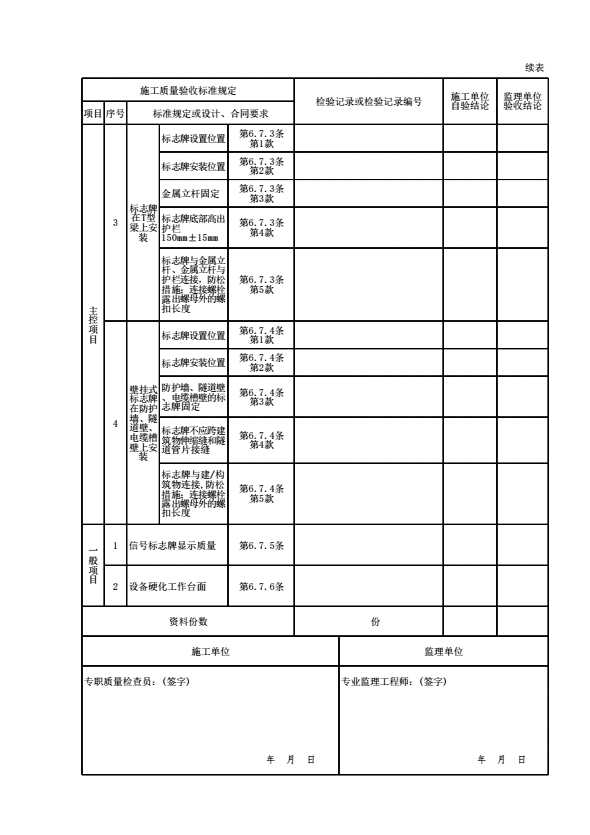 表格名称:08090306 信号标志牌检验批质量验收记录表