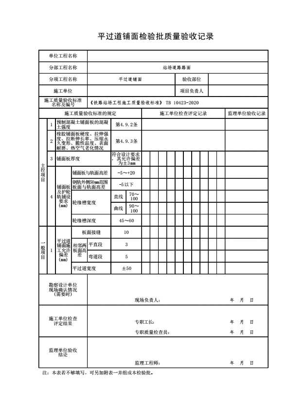 平过道铺面检验批质量验收记录