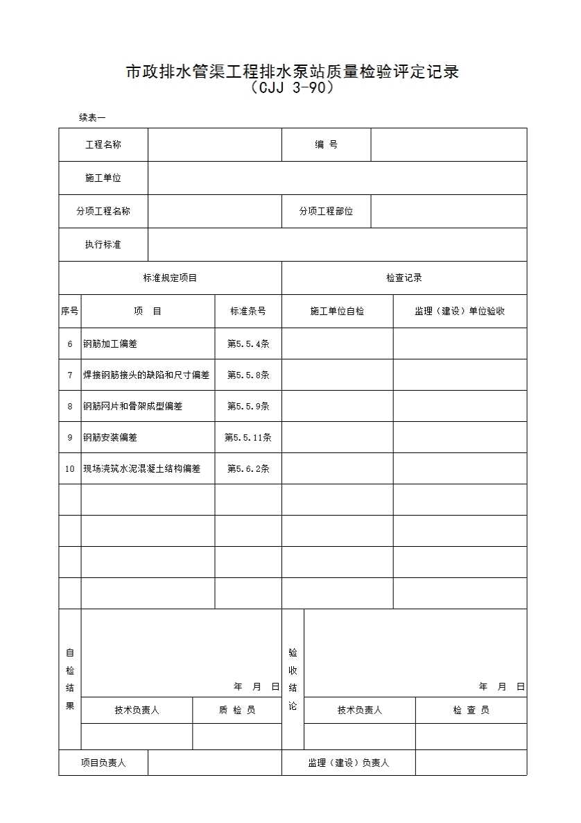 表格名称:3.6 市政排水管渠工程排水泵站质量检验评定记录(续表一)
