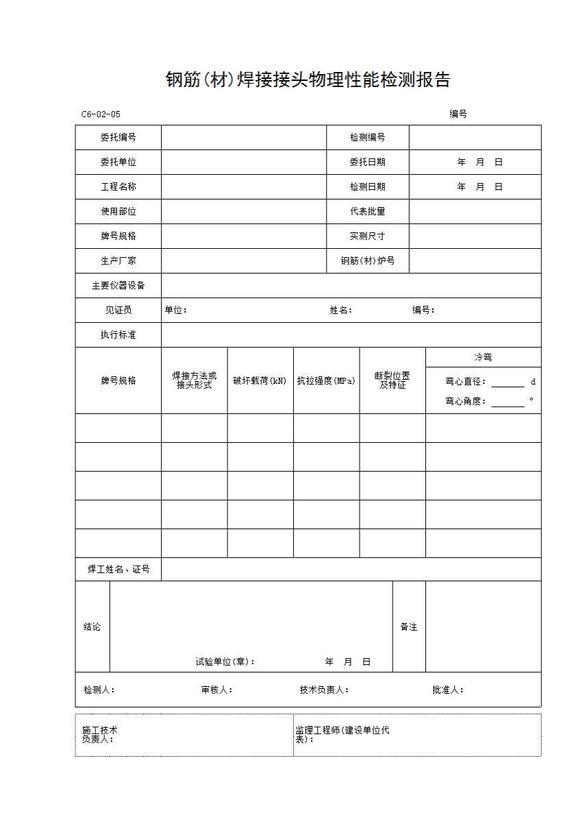 表格名称:C6-02-05 钢筋(材)焊接接头物理性能检测报告