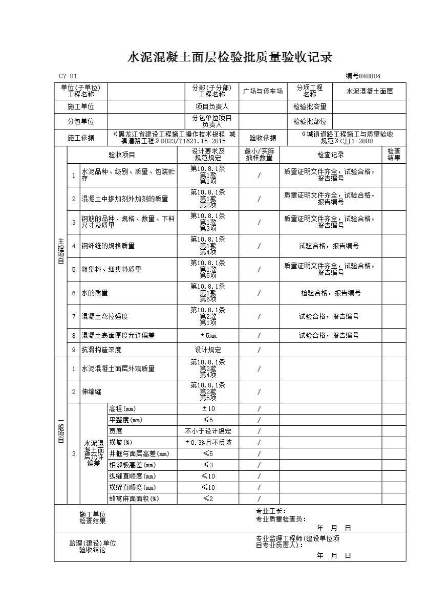 表12.2.4 广场、停车场水泥混凝土面层允许偏差