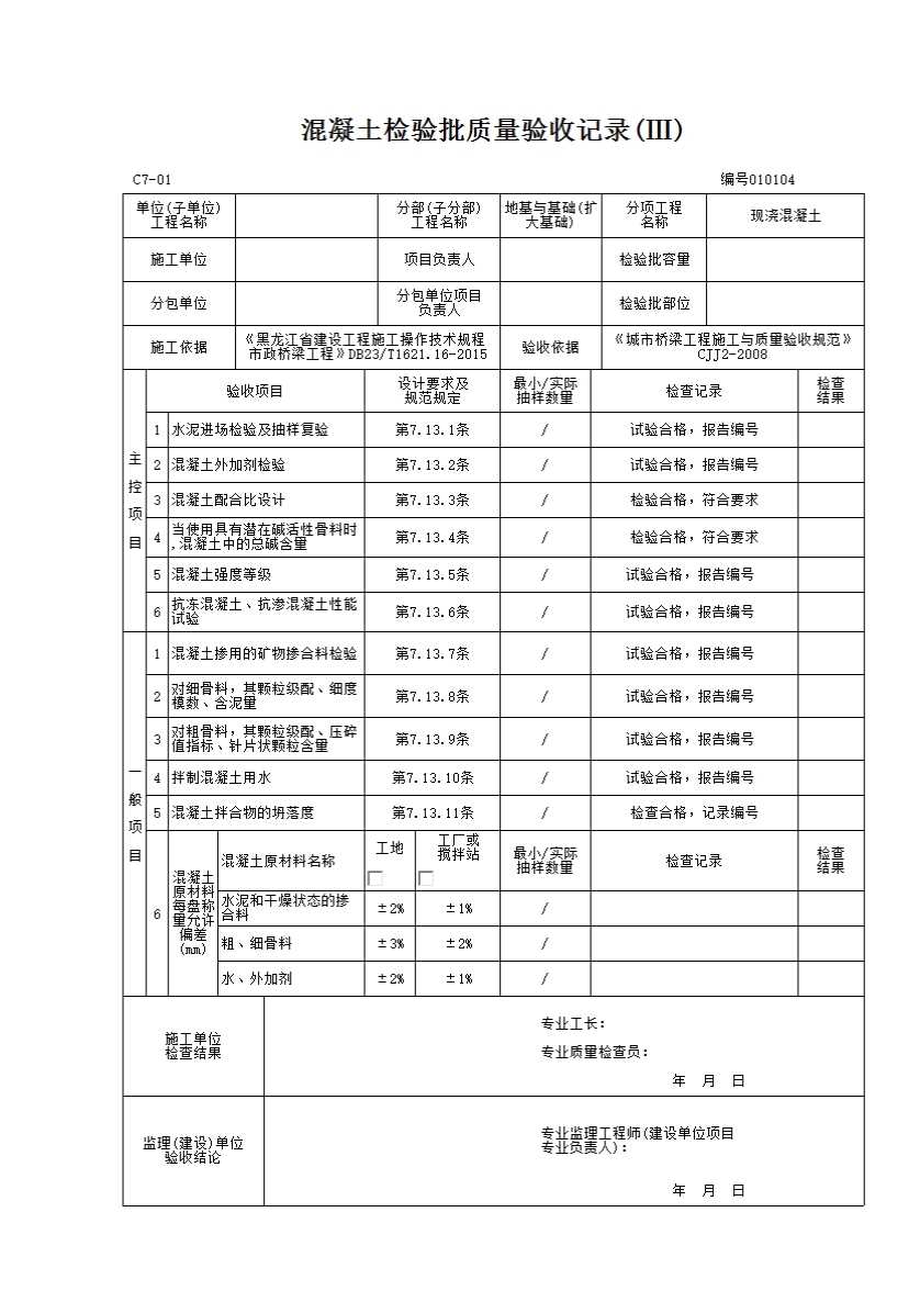 7.13.7 混凝土掺用矿物掺合料除全数检查合格证和出厂检验报告外,应对其细度、含水率、抗压强度比等项目抽样检验。