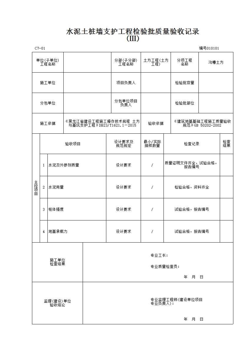 表格名称:010101 水泥土桩墙支护工程检验批质量验收记录(Ⅲ)