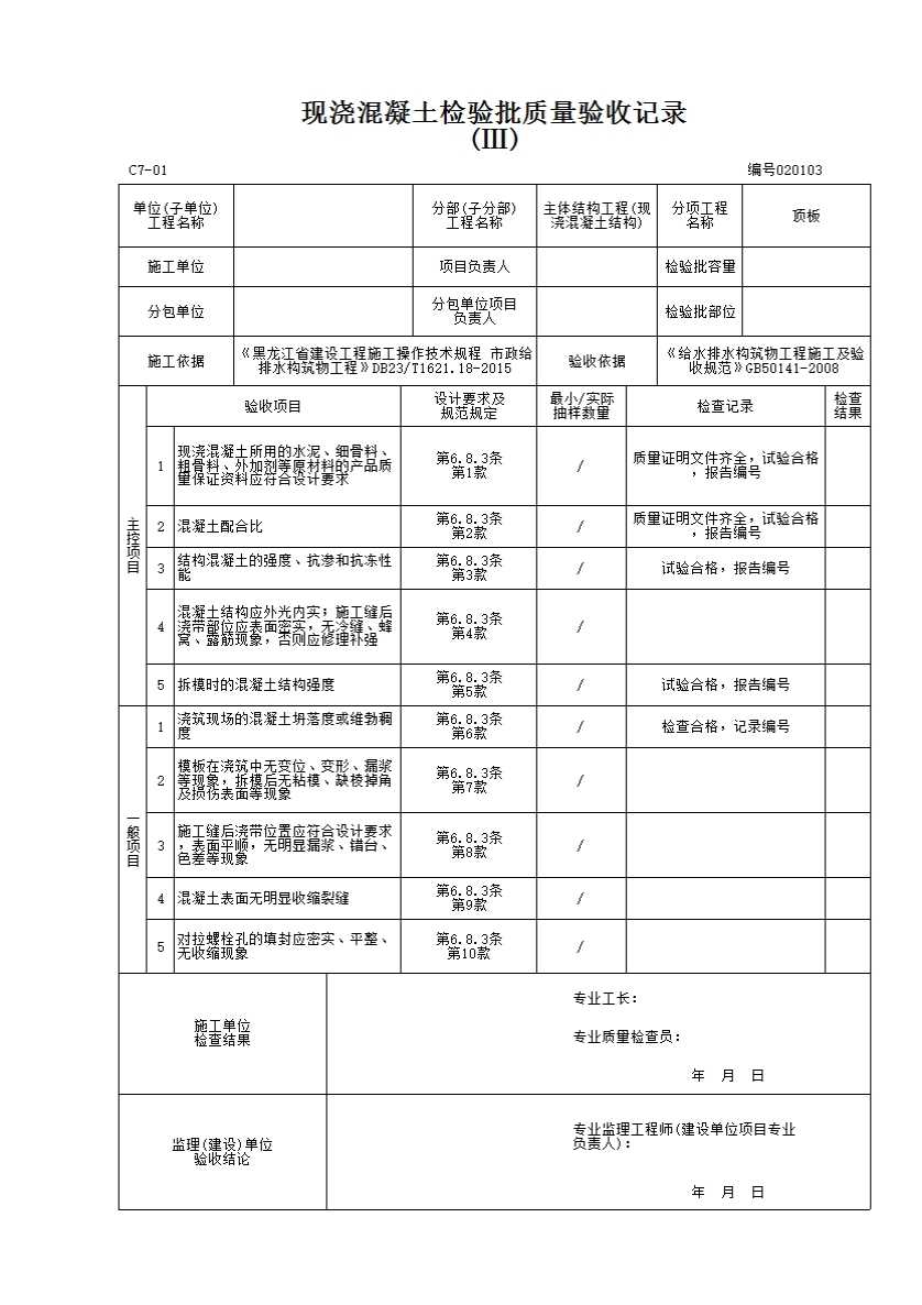 020103 现浇混凝土检验批质量验收记录(Ⅲ)