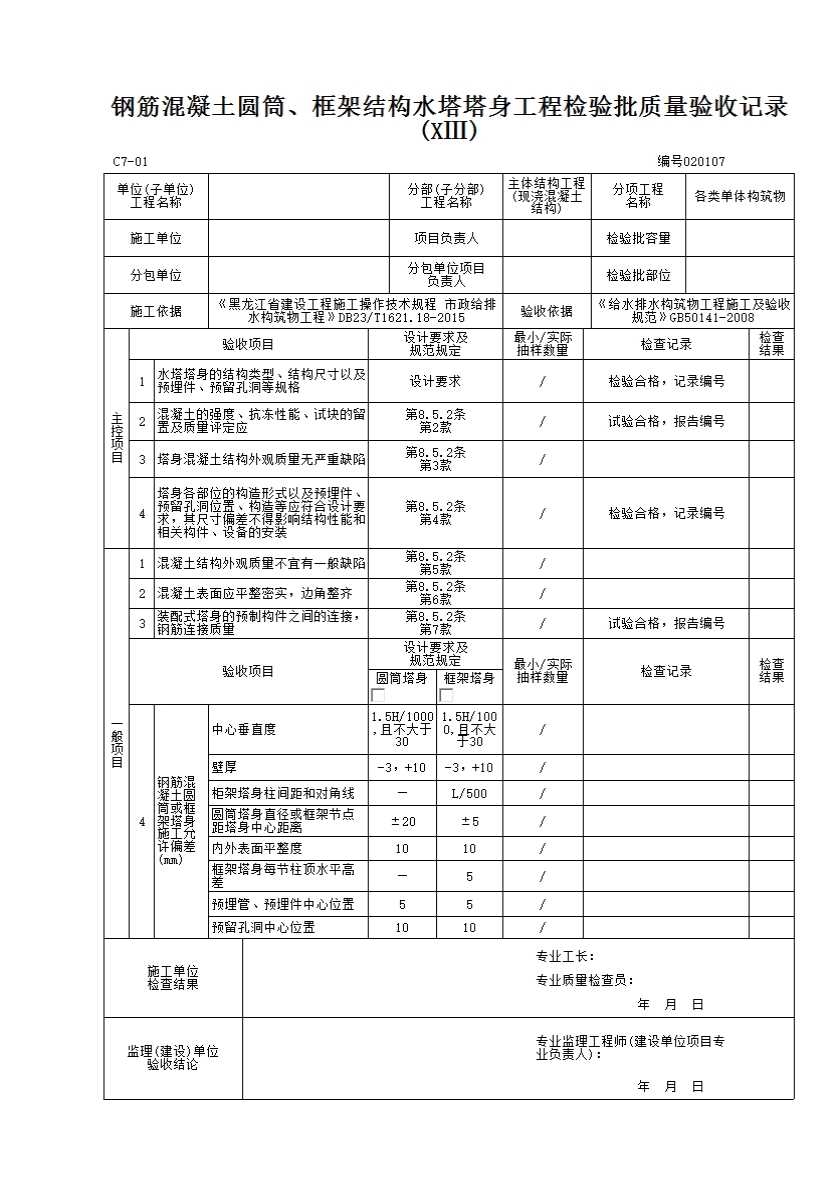 钢筋混凝土圆筒、框架结构水塔塔身质量验收标准