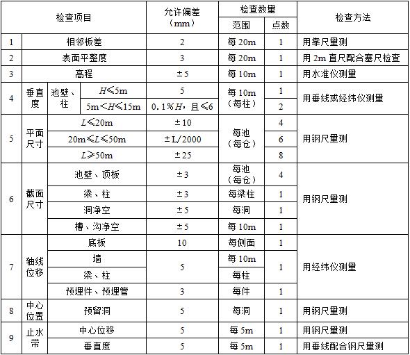 表6.8.1  整体现浇混凝土水处理构筑物模板安装允许偏差