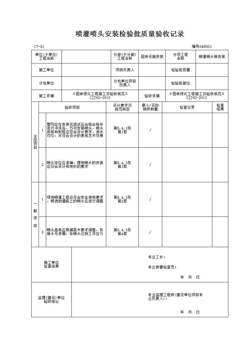表格名称:040003 喷灌喷头安装检验批质量验收记录