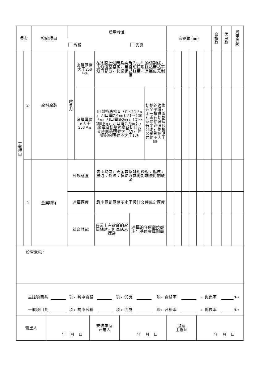 表格名称:表4.4.3 水工金属结构表面防腐蚀(部分)安装质量检查表