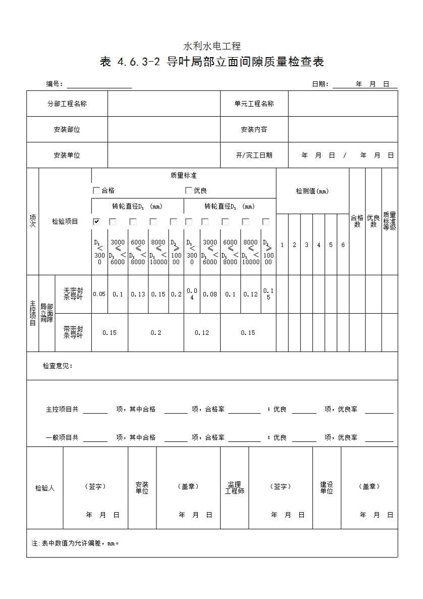 表格名称:表 4.6.3-2 导叶局部立面间隙质量检查表