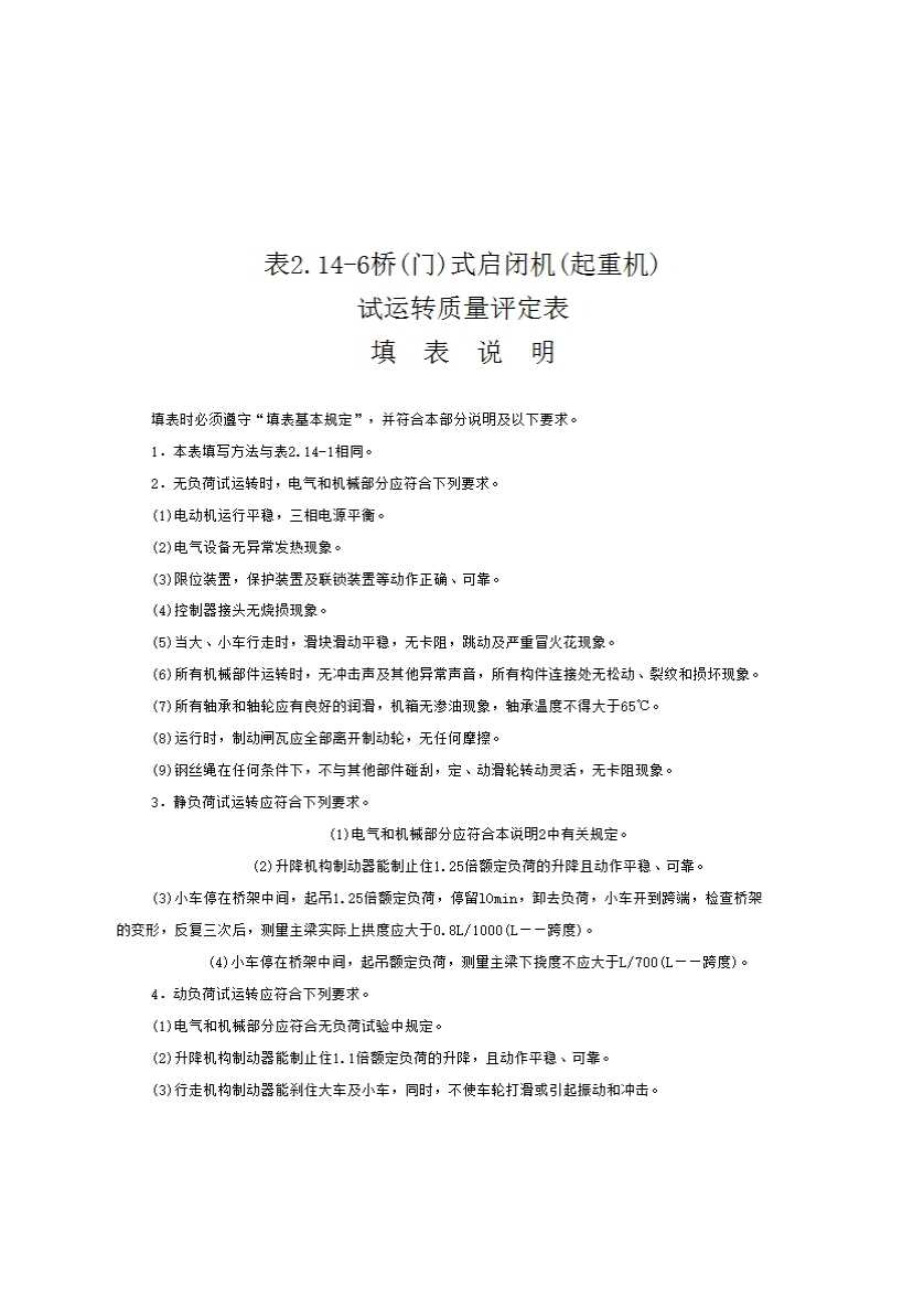 表2.14-6 桥(门)式启闭机(起重机)试运转质量评定表