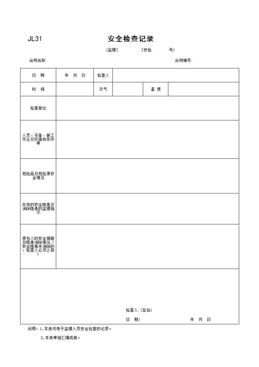 表格名称:JL31 安全检查记录