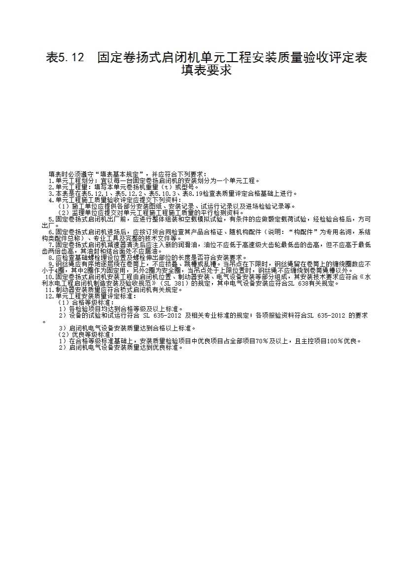 表5.12  固定卷扬式启闭机单元工程安装质量验收评定表填表要求