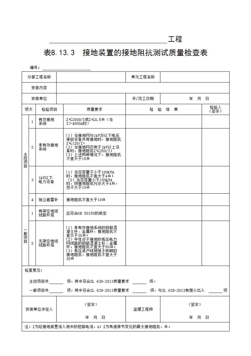 表8.13.3 接地装置的接地阻抗测试质量检查表