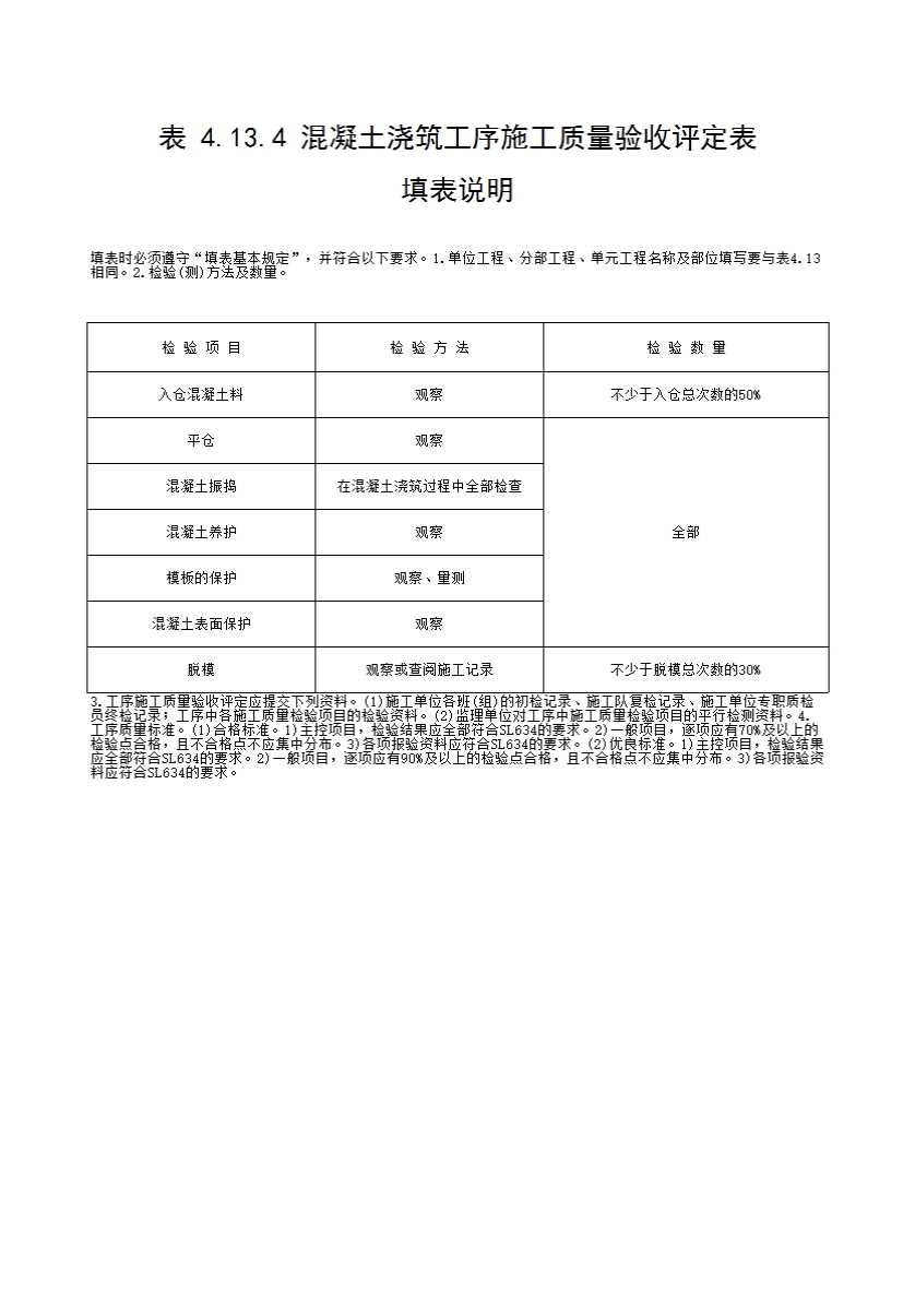 表 4.13.4 混凝土浇筑工序施工质量验收评定表