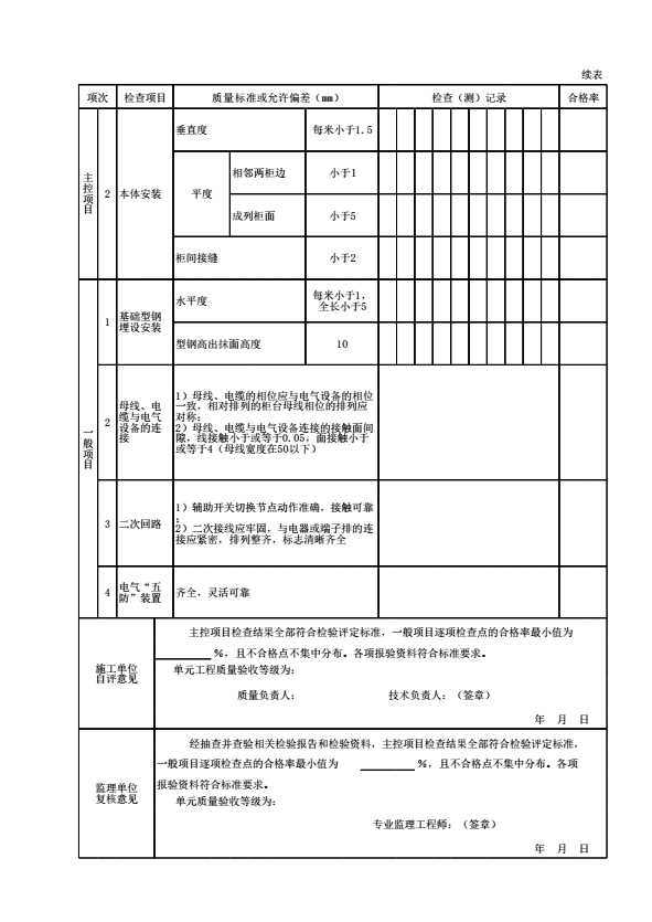 表格名称:表12.4.5 高低压开关柜、配电箱安装单元工程施工质量验收表