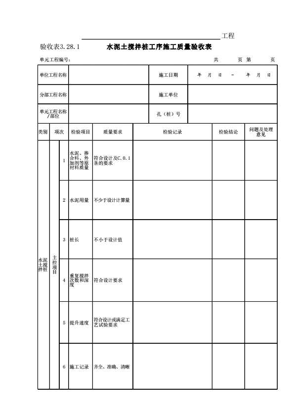 表格名称:表3.28.1 水泥土搅拌桩工序施工质量验收表