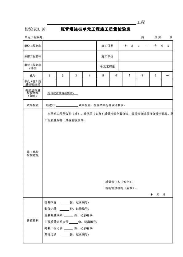 表格名称:表3.18 沉管灌注桩单元工程施工质量检验表