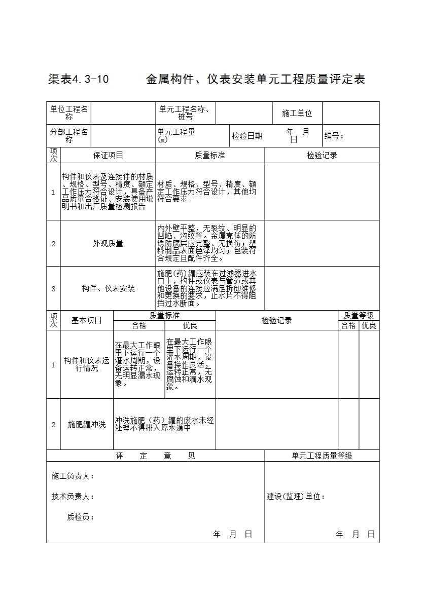 4.3-10金属构件、仪表安装单元工程质量评定表