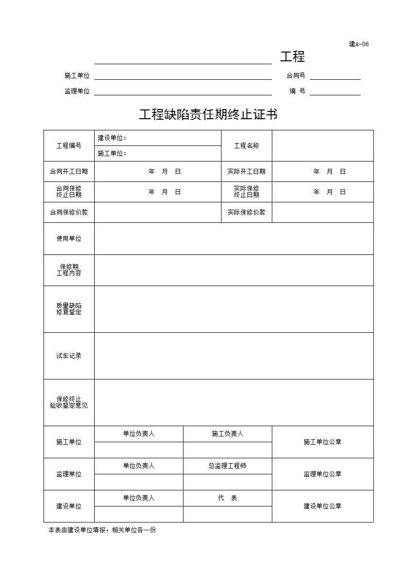 6、(建A-06)工程缺陷责任期终止证书