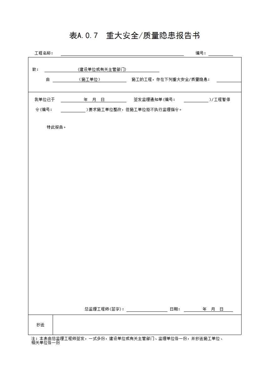 表格名称:表A.0.7 重大安全、质量隐患报告书