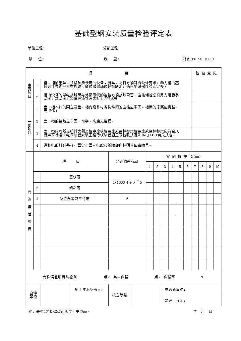 表格名称:065 基础型钢安装质量检验评定表