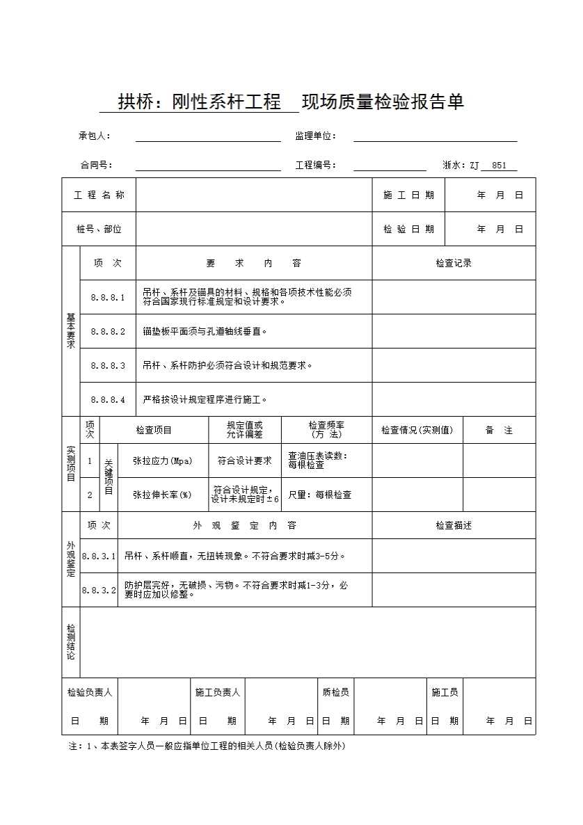 浙水:ZJ851 拱桥:刚性系杆工程现场质量检验报告单