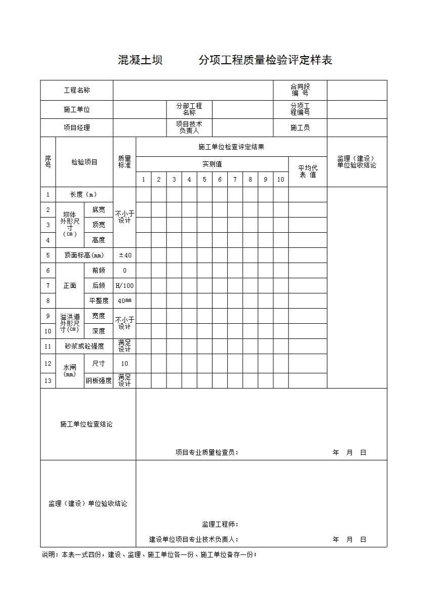 表格名称:混凝土坝分项工程质量检验评定样表19