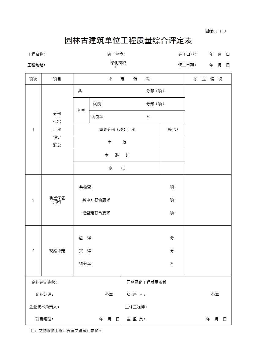 园绿C3-1-3园林古建筑单位工程质量综合评定表