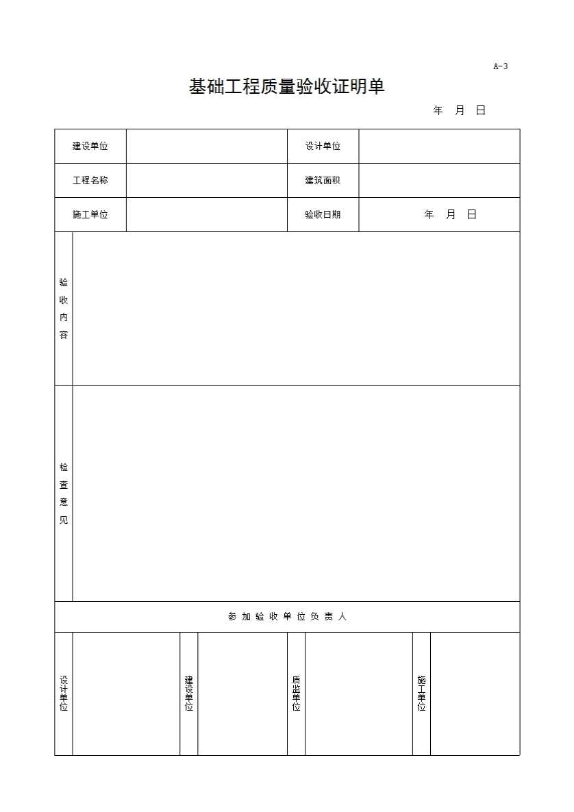 A-3基础工程质量验收证明单