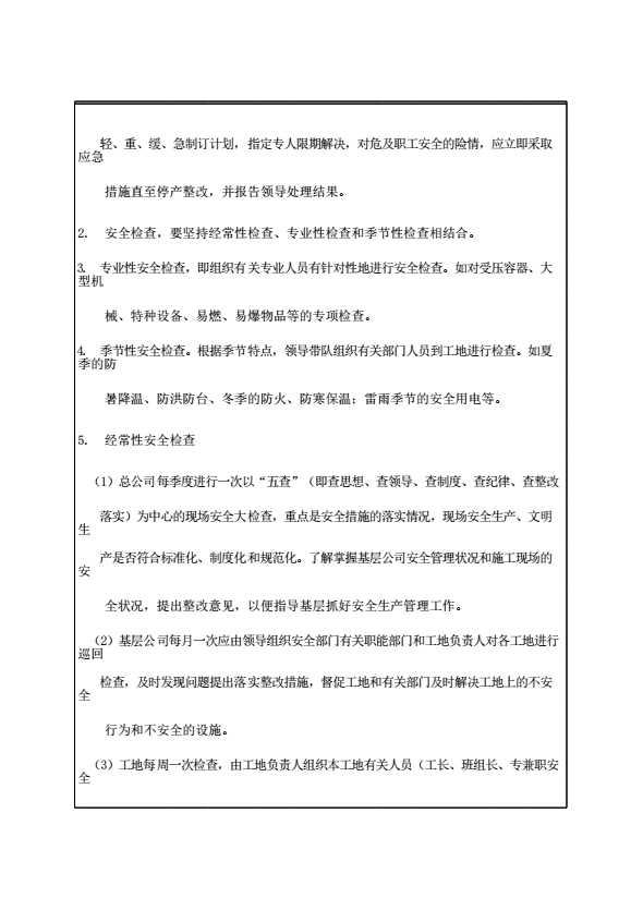 表格名称:安全生产检查制度