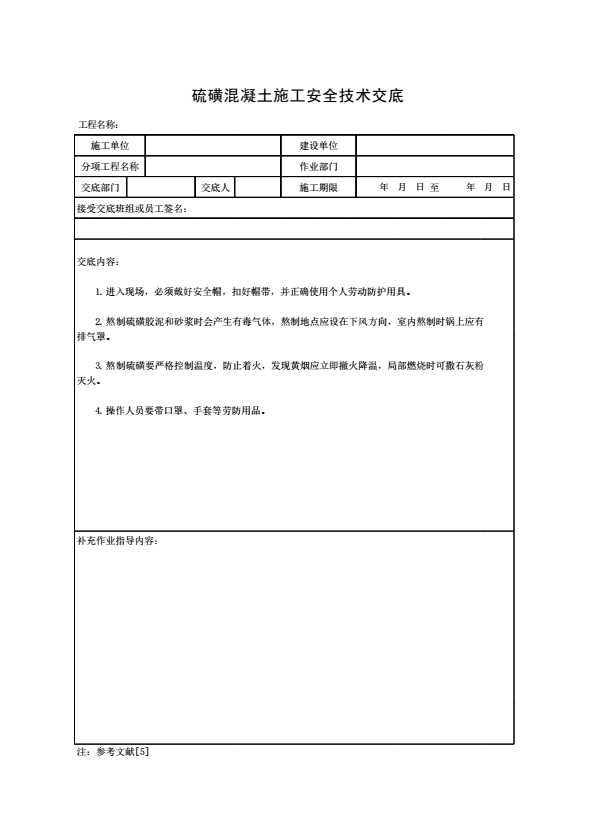 表格名称:硫磺混凝土施工安全技术交底