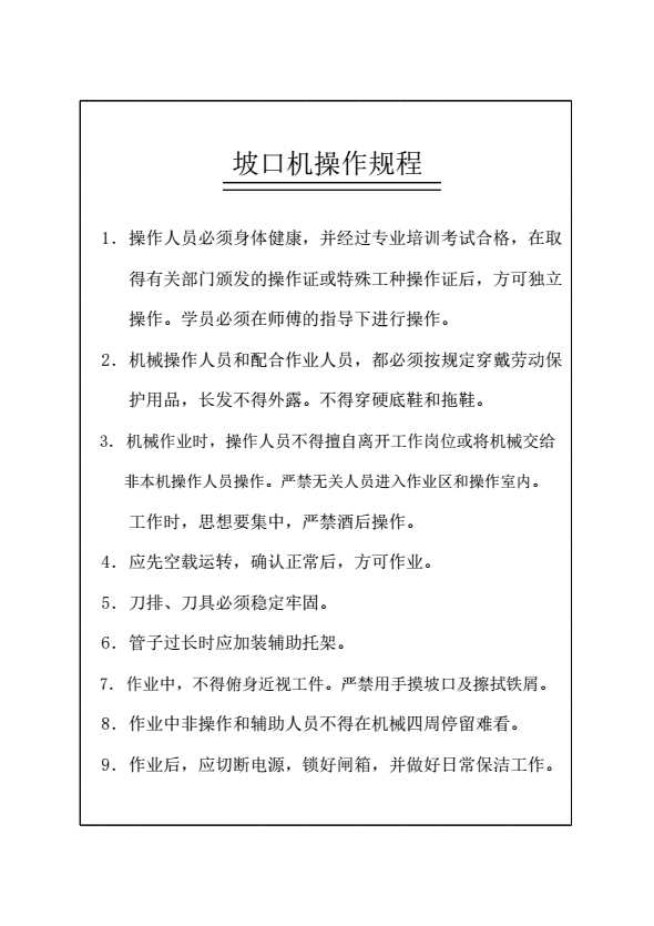 表格名称:坡口机操作规程