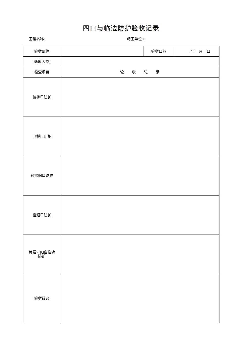 表格名称:四口与临边防护验收记录
