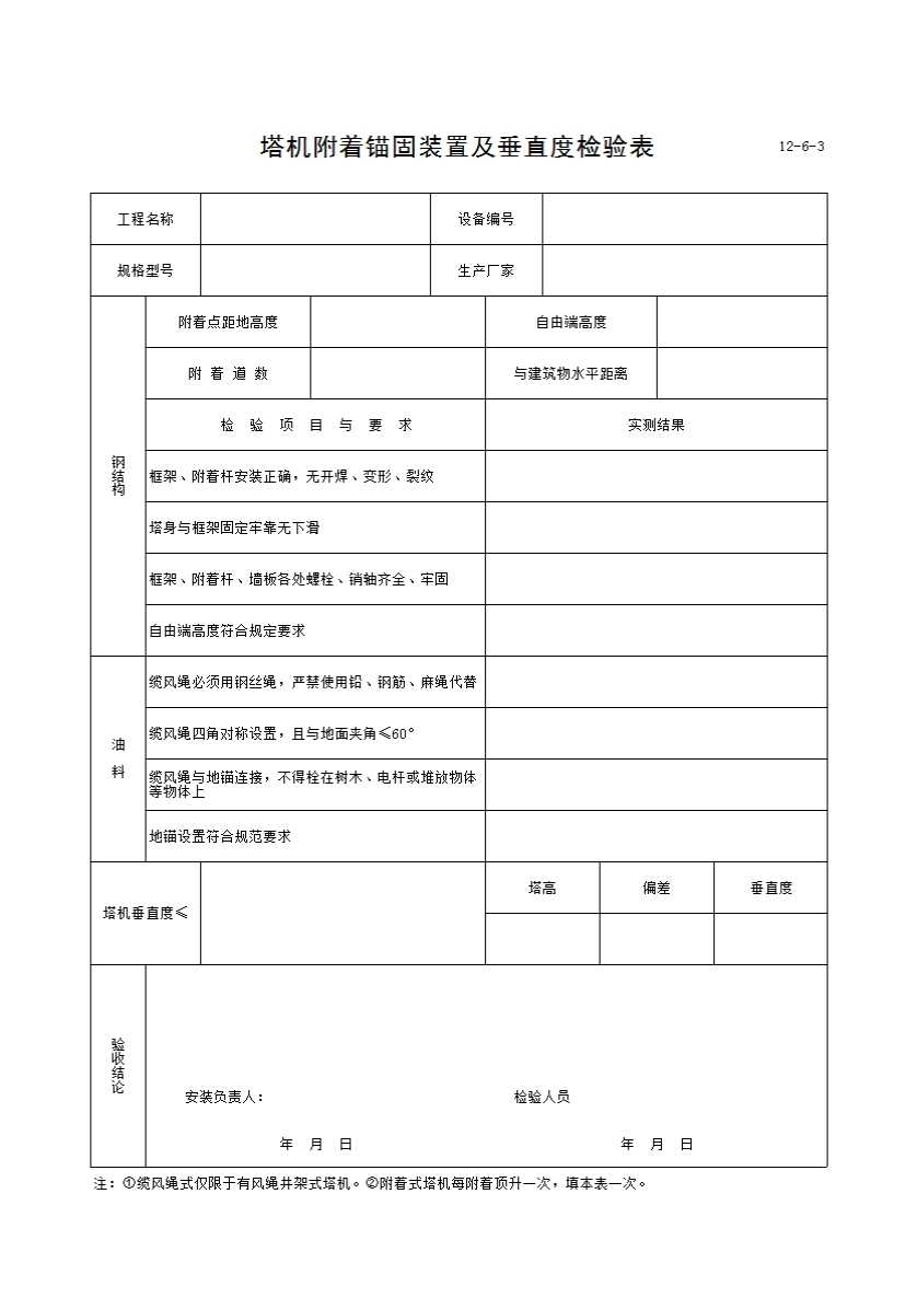 0120603_塔机附着锚固装置及垂直度检验表_12-6-3
