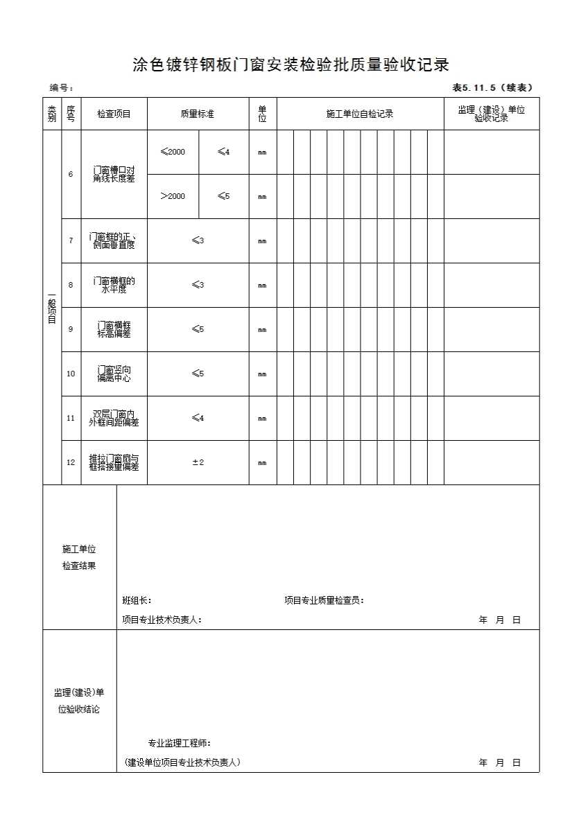 表格名称:5.11.5 涂色镀锌钢板门窗安装检验批质量验收记录