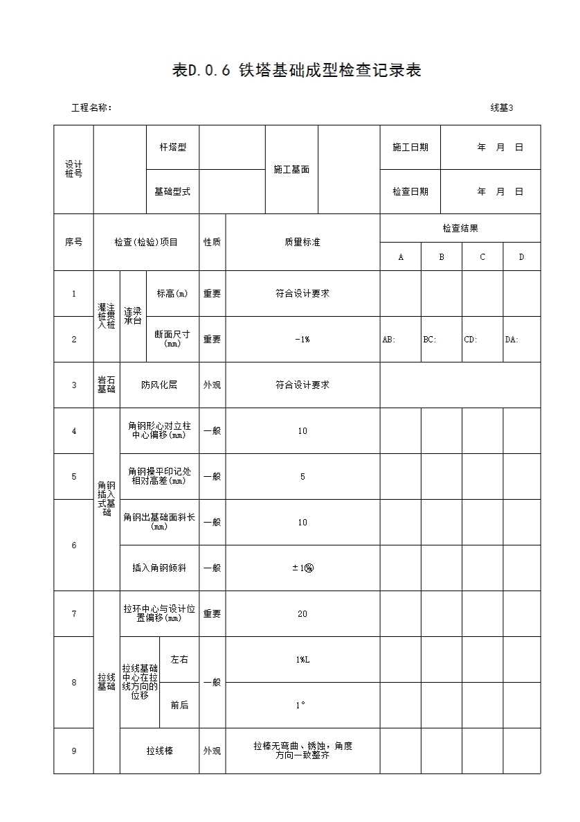 表格名称:表D.0.6 铁塔基础成型检查记录表