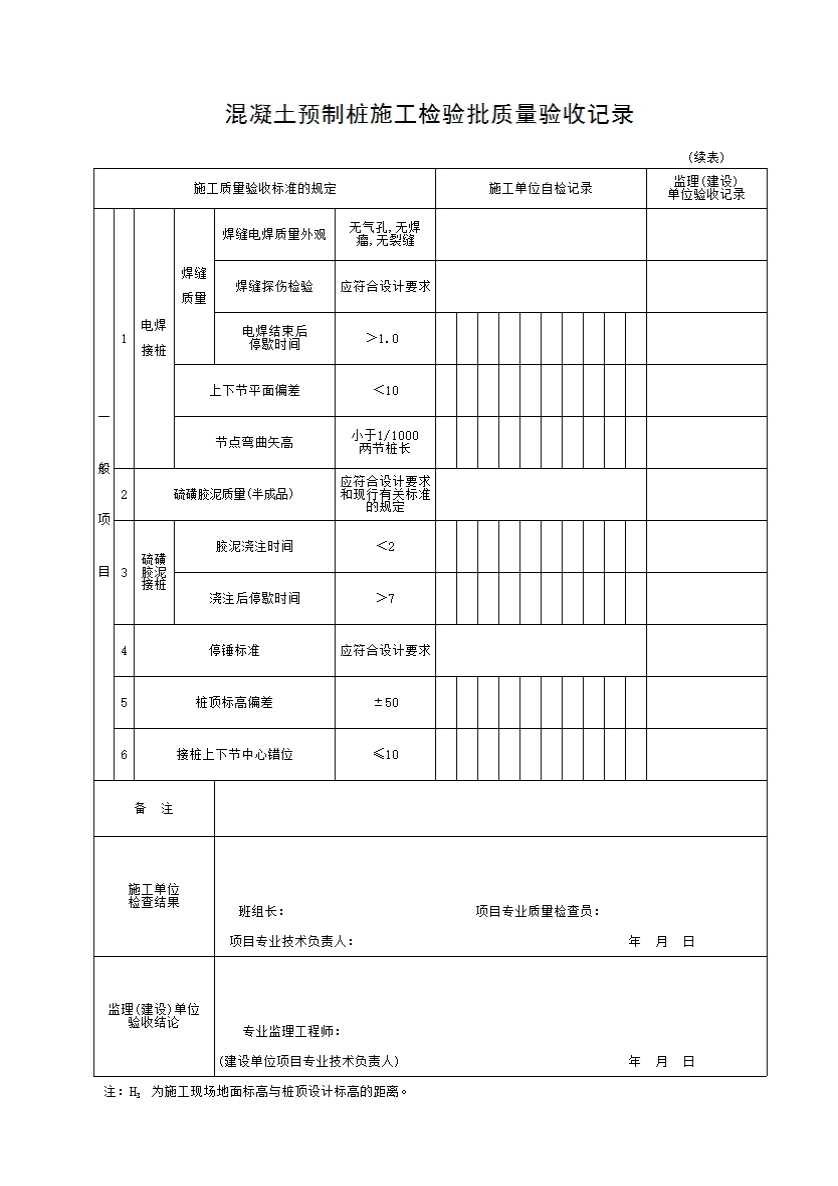表格名称:混凝土预制桩施工检验批质量验收记录