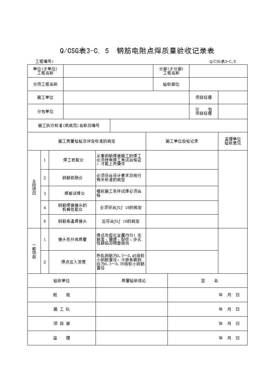 QCSG 表 3-C.5 钢筋电阻点焊质量验收记录表