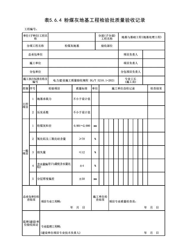 表格名称:表5.6.4 粉煤灰地基工程检验批质量验收记录