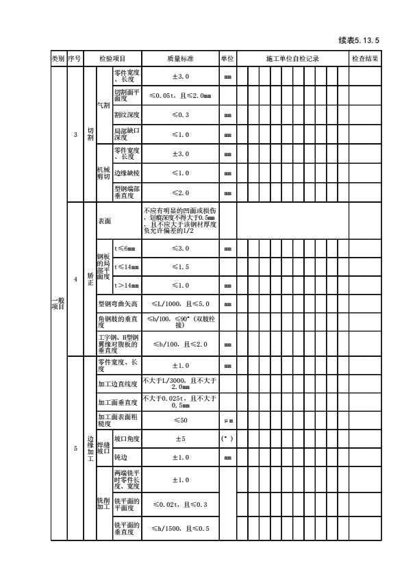 表格名称:[符合表5.13.5]表5.14.3 型钢(钢管)制作检验批质量验收记录