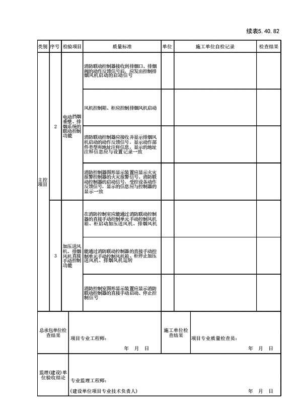 表格名称:表5.40.82 火灾自动报警系统防排烟系统控制功能调试、检测检验批质量验收记录