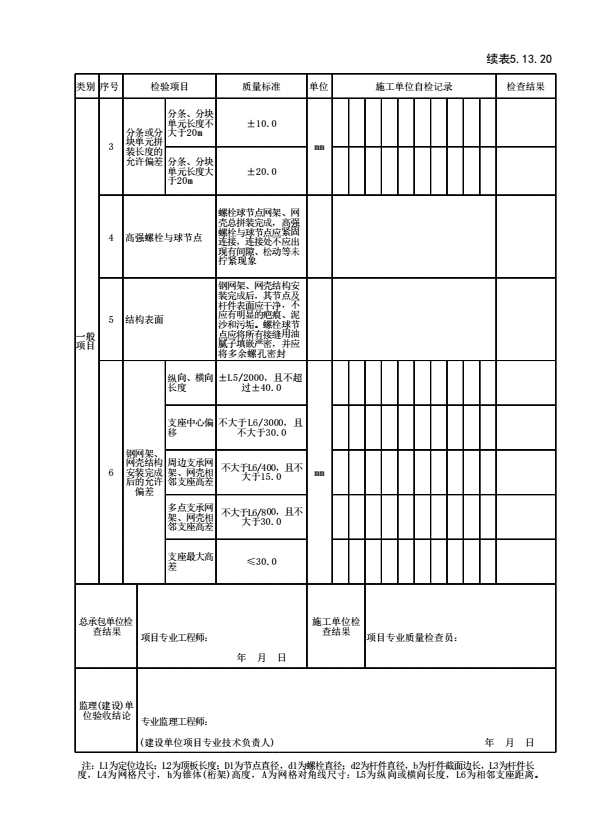 表格名称:[符合表5.13.20]表10.6.6钢网格安装工程检验批质量验收记录