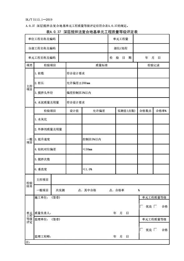 表格名称:表A.0.37 深层搅拌法复合地基单元工程质量等级评定表