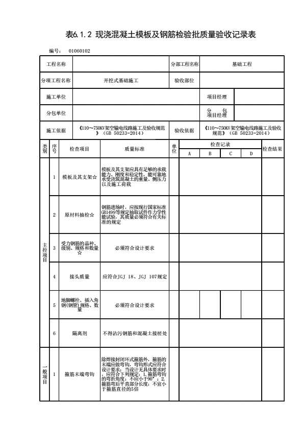 表格名称:表6.1.2 现浇混凝土模板及钢筋检验批质量验收记录表