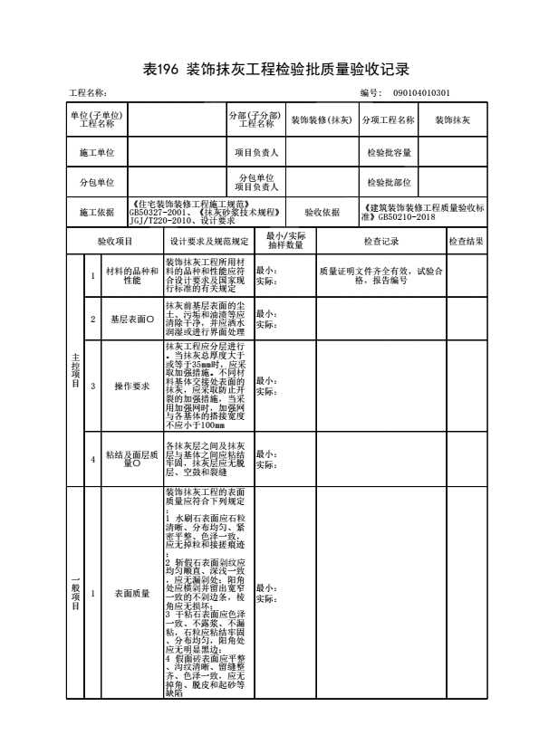 表格名称:090104010301 装饰抹灰工程检验批质量验收记录