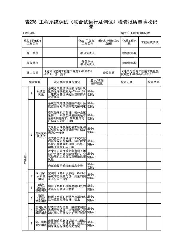 140206010702 工程系统调试(联合试运行及调试)检验批质量验收记录