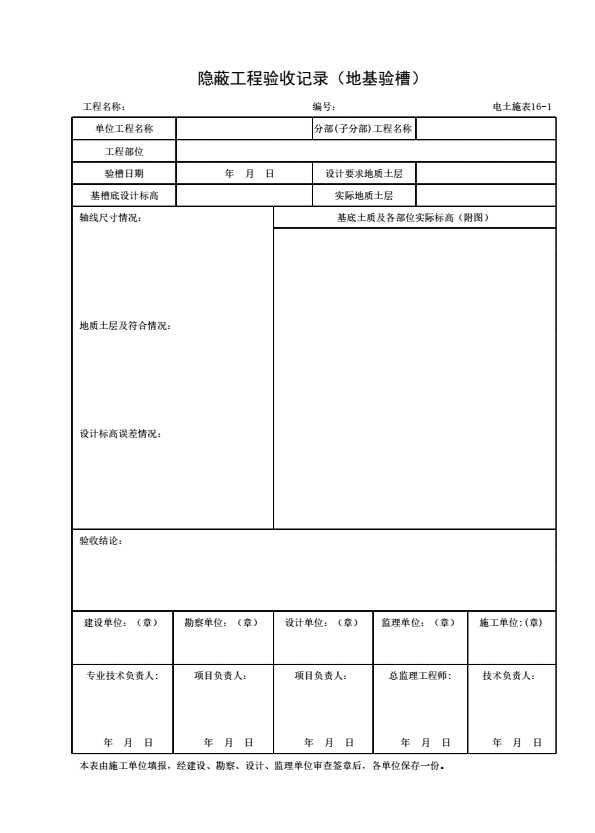 表格名称:电土施表16-1 隐蔽工程验收记录(地基验槽)